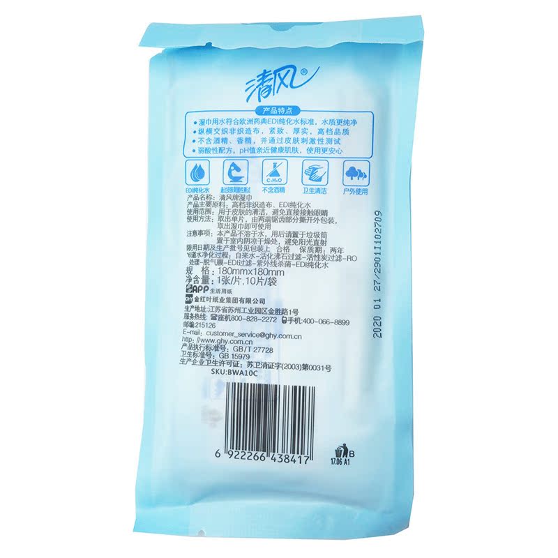 Breeze EDI pure water wet wipes 100 pieces Non-fragrant baby baby soft wipes 10 packs of independent packaging Portable