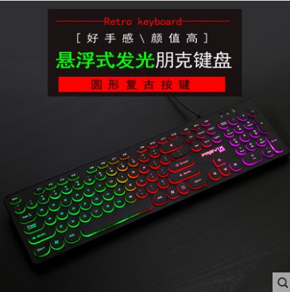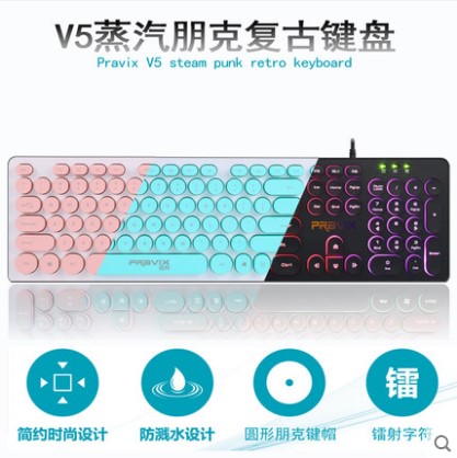 Platinum Division V5 Steampunk wired keyboard Retro backlit computer notebook desktop office home luminous external USB round keycap dot game USB chicken pink blue keyboard