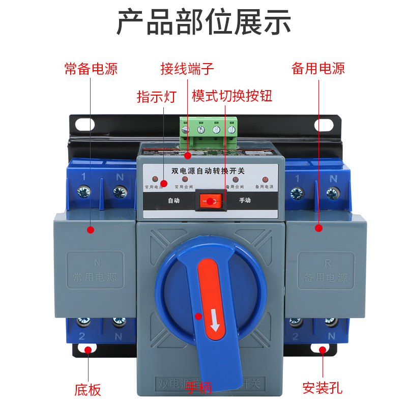 CB class mini household single phase 220V dual power supply automatic transfer switch toggle switch STQ1-63A 2P