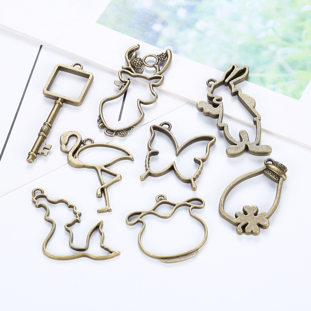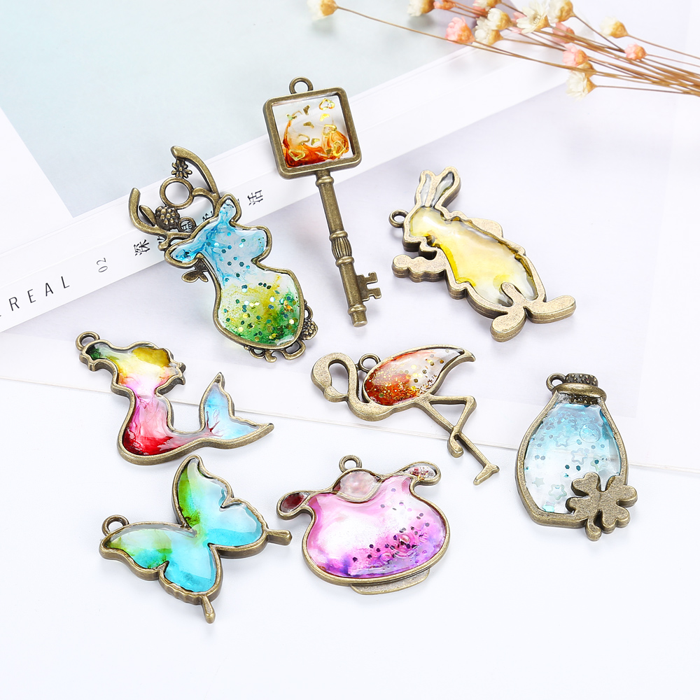Autumn orchid DIY crystal glue drop metal frame epoxy AB glue pendant vintage cat rabbit deer pig key