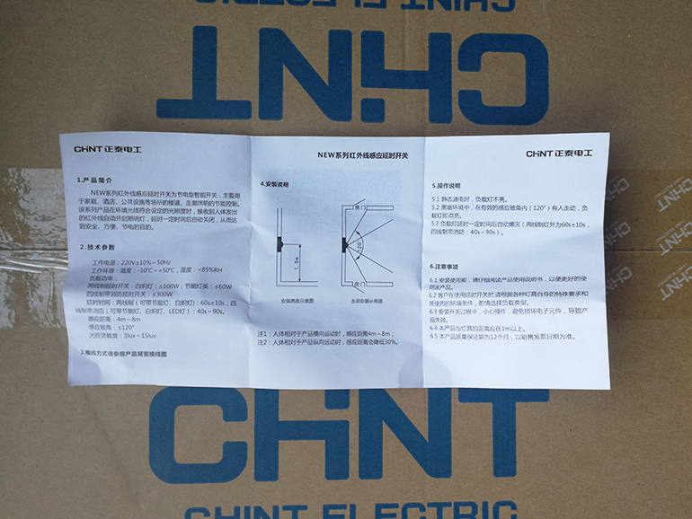 CHINT type 86 human body sensor switch A combination of infrared sensor delay switch 100W two-wire delay