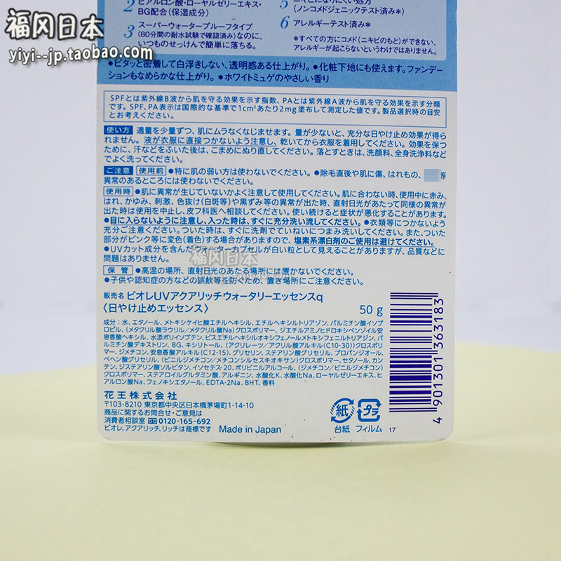 Japan's new version of Bi-soft blue tube water refreshing sunscreen spf50 50g
