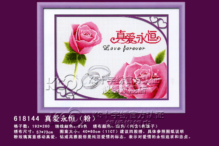 Clearance KS cross stitch printed fabric section true love eternal-pink Y618144 57*73cm