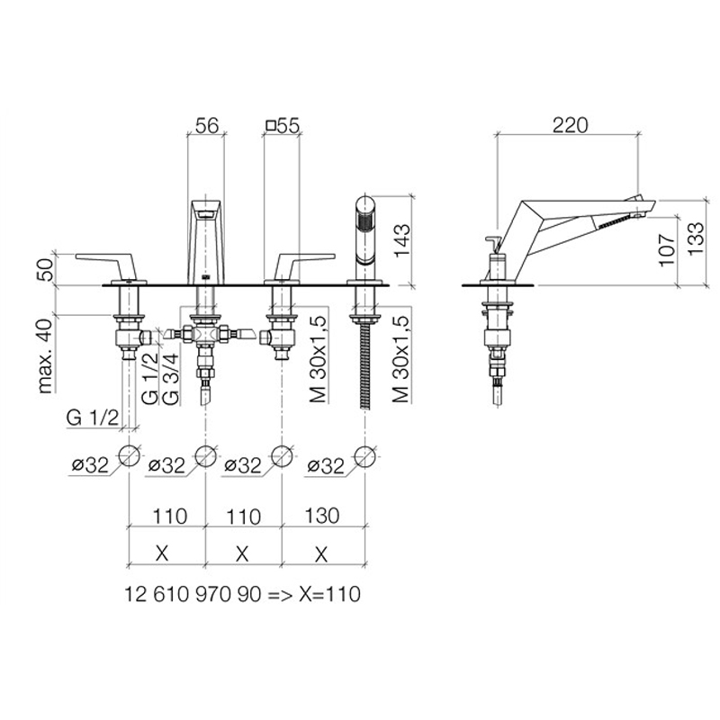 Tax included German contemporary Dornbracht four-hole bathtub shower faucet 27532732-00