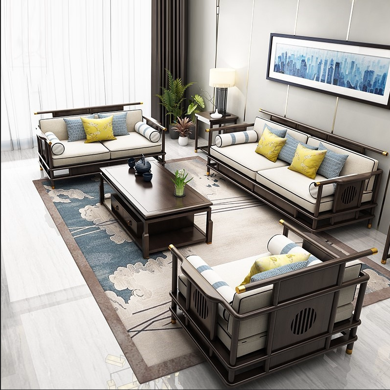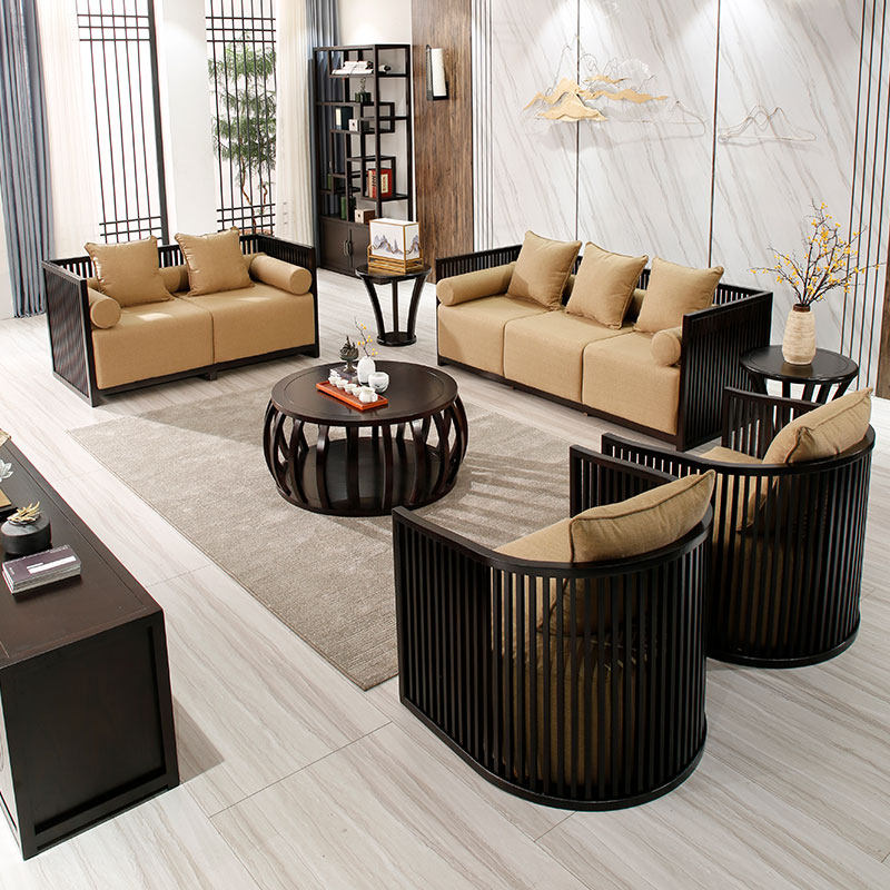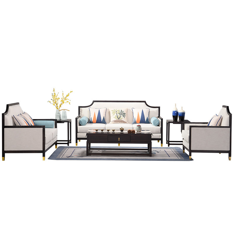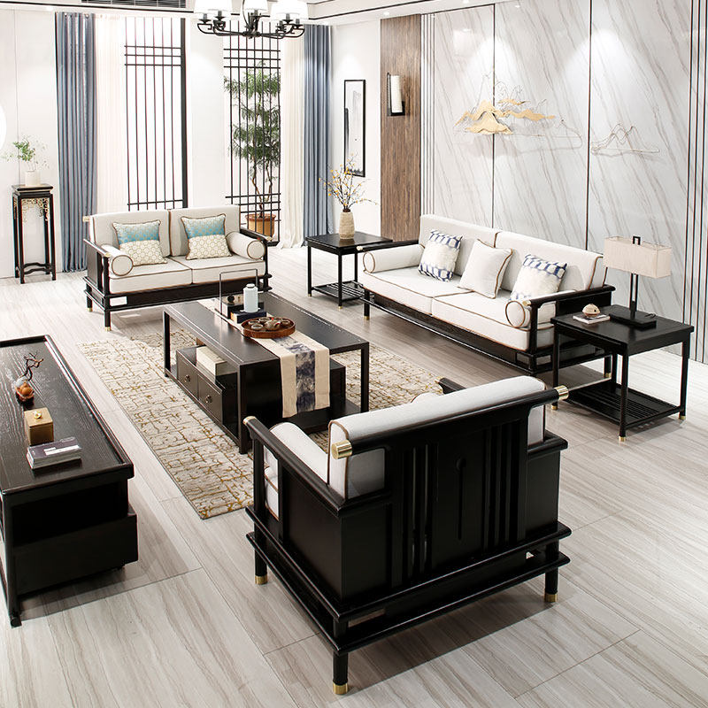 New Chinese sofa solid wood cloth art composition minimalist modern living room small family style hotel villa light and luxurious and full of furniture