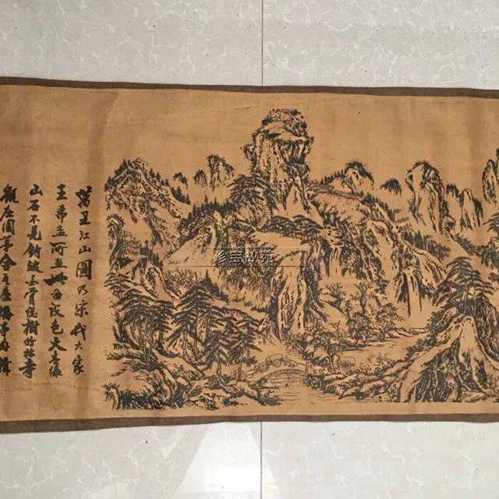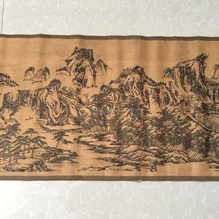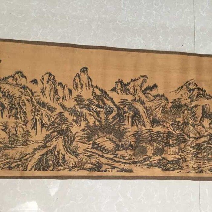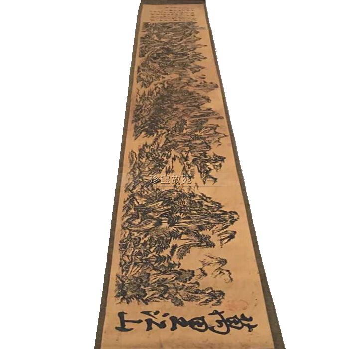 New antique painting long scroll Chinese painting characters silk silk living room decoration old hanging painting thousands of miles of rivers and mountains scroll painting large