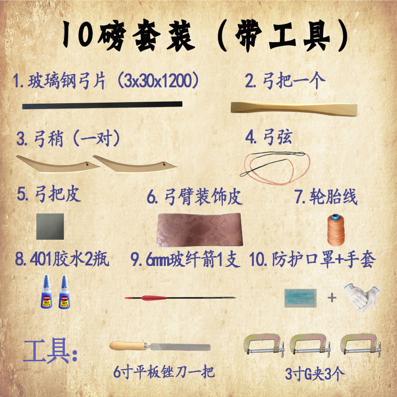 Traditional DIY glass slide bow and arrow epoxy resin bow piece bow handle slightly recurve bow and arrow set to make an all-in-one bow set - Taobao