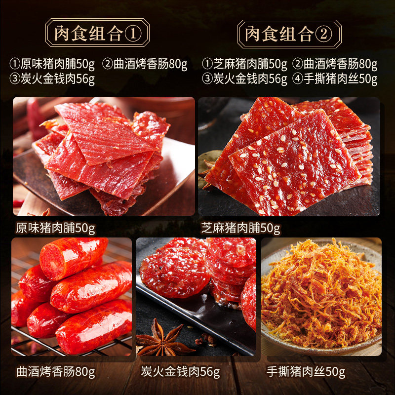 Original preserved pork 50g sausage 80g money 56g sesame pork preserved 50g sausage 80g money 56g pork shredded pork 50g