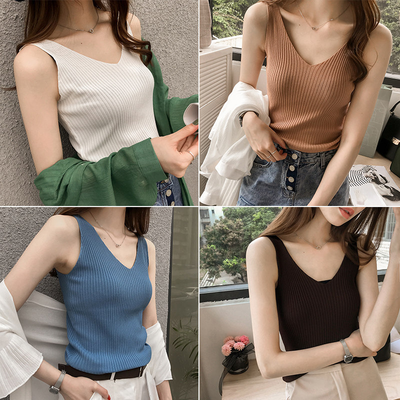 Knitted camisole women's autumn and winter women's suits loose sleeveless tops simple temperament V-neck bottoming shirts