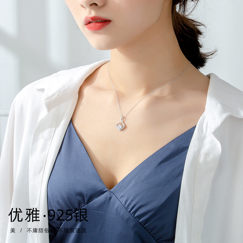 Pure silver crystal necklace female damp net red collarbone chain Korean minimalist couple girlfriends Ornaments Pendant Light Extravagant