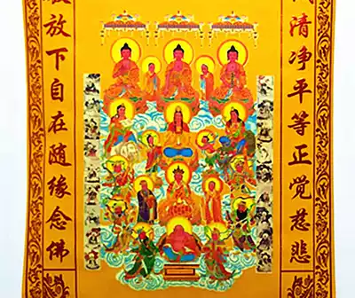 Three feet and three flannel cloth Baojiaxian out of the horse fairy Buddha family Hall single cloth Buddha in the same hall full Buddha map