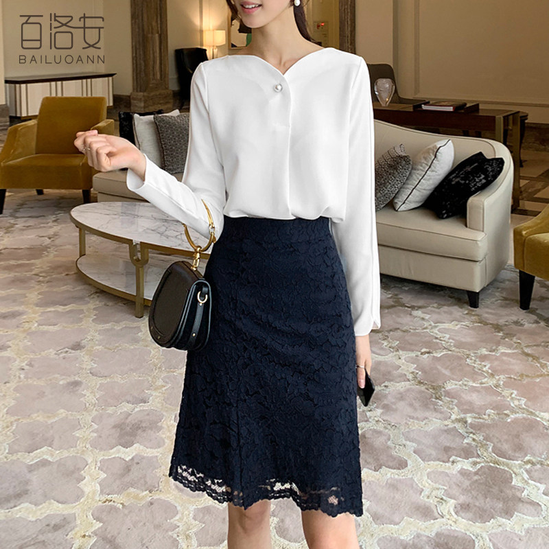 Bailuoan High Waist Temperament Skirt Elegant Lace Skirt Women's Spring Dress New Thin Fashion A-line Skirt Middle Skirt