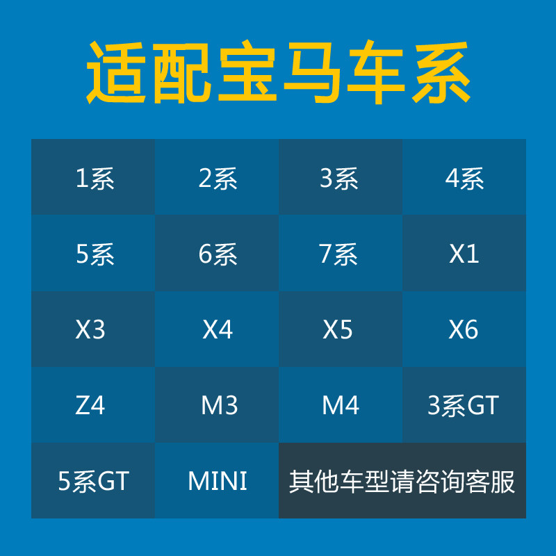 Chauffeur-only, models with no options, please take this message (year + model) 1 Series (11-16 models) 1 Series (17 models to date) 3 Series (10 models so far) 3 Series (04-09 models) 5 Series (04-09 models) 5 Series (10-17 models) 5 Series (18 models so far) X2 (no year models) 7 Series (09-15 models) 7 Series (16 models to date) X1 (09-15 models) X1 (16 models to date) X3 (11-17 models) X3 (06-10 models) X3 ( 18 models so far) X4 (note year) X5 X6 (06-11 models) X5 X6 (12-13 models) X5 X6 (14-18 models) MINI (contact customer service check interface) 5 Series GT (no year model) 2 Series Travel Edition (14-19 models) 2 Series Coupe (before 19 models)