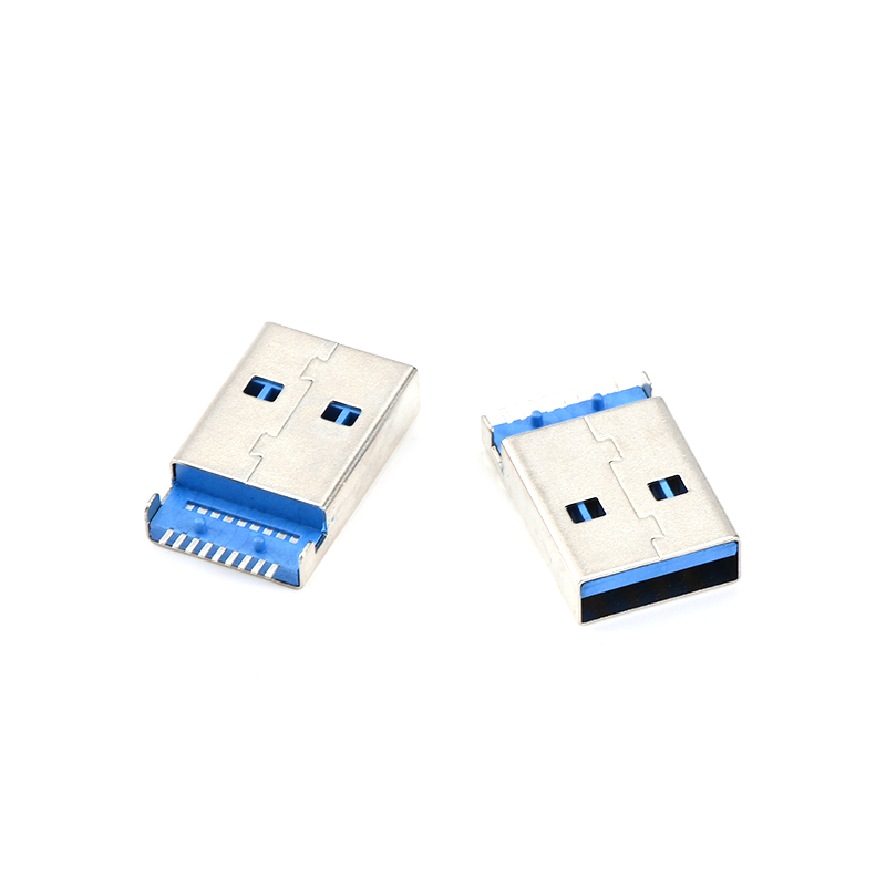USB male head 3 0AM sunken plate blue plastic patch plug 9p 9 pin A male USB connector 5