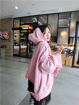 BORAKOO Korea Dongdaemun Borara recommends leather pink torn hooded cardigan jacket