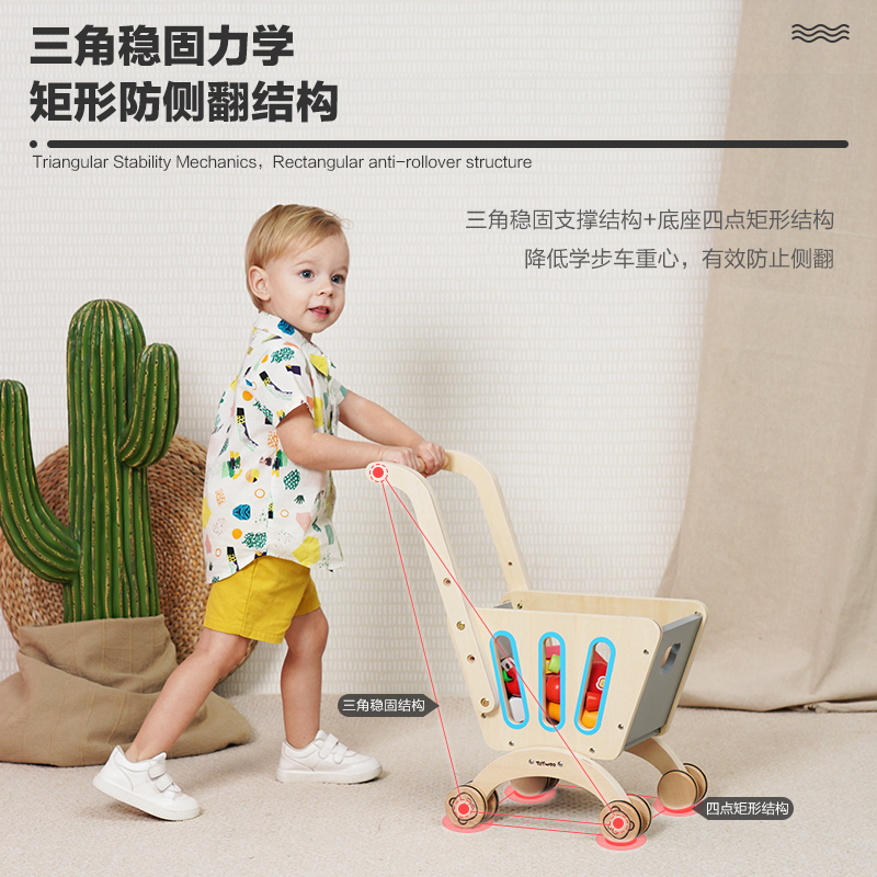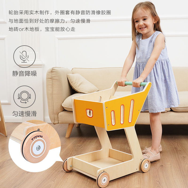 ToyWoo Children's shopping cart toy girl supermarket baby wooden trolley child house boy toy