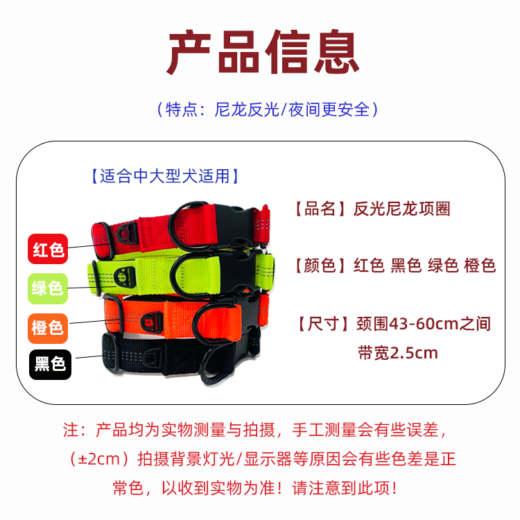 Night reflective collar traction rope dog collar medium and large dog collar pet supplies traction rope neckband neck sleeve
