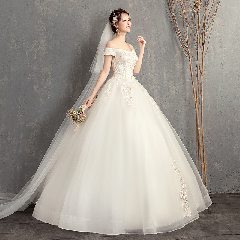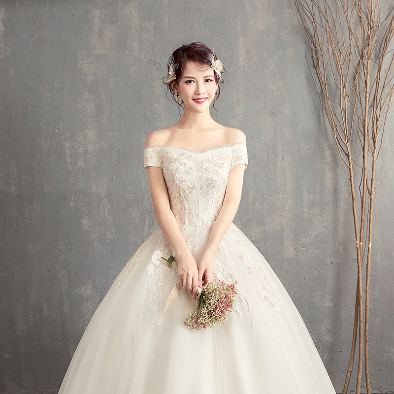 Wedding dress 2020 New temperament Bride Herben light shake with the same net red minimalist French-shaped shoulder female