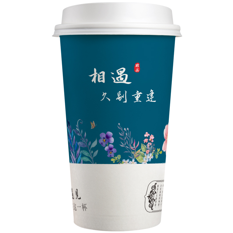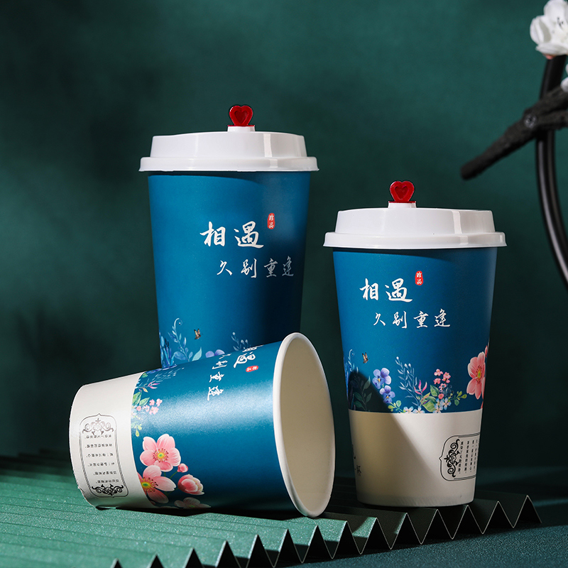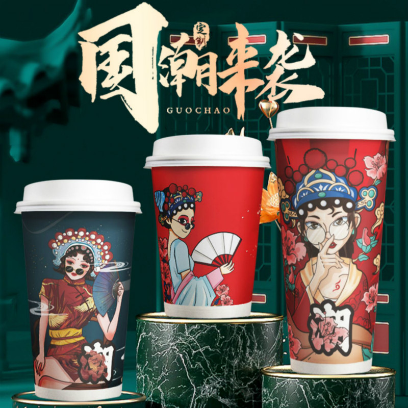 Chinese style retro disposable paper cup milk tea cup 500ml with lid double-coated national tide thickening 700ml custom