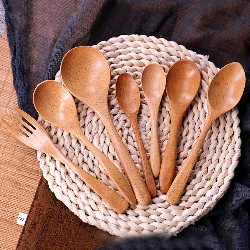 Solid Wood Small Wooden Spoon Small Tablespoon Wooden Spoon Day Style Korean Wood Spoon Honey Spoon Stir Spoon Coffee Spoon Wood Soup Spoon