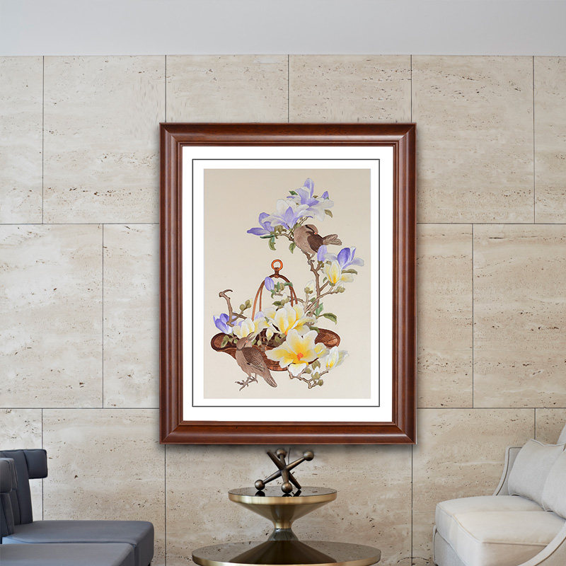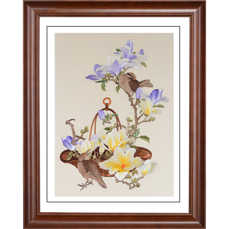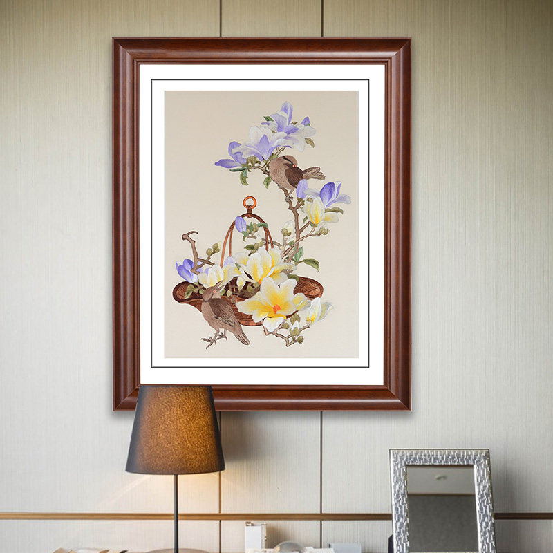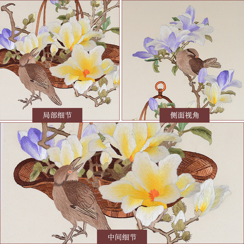 Golden Wu Needle Su Embroidery Finished Product Hung Painting Pure Handmade Embroidery Flower Bird Dining Hall Wall Decoration Painting Cloth Art Hanging Painting Watchkeeping