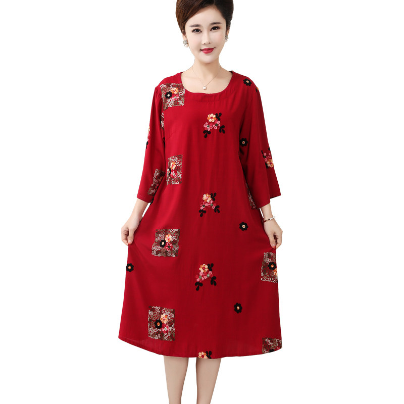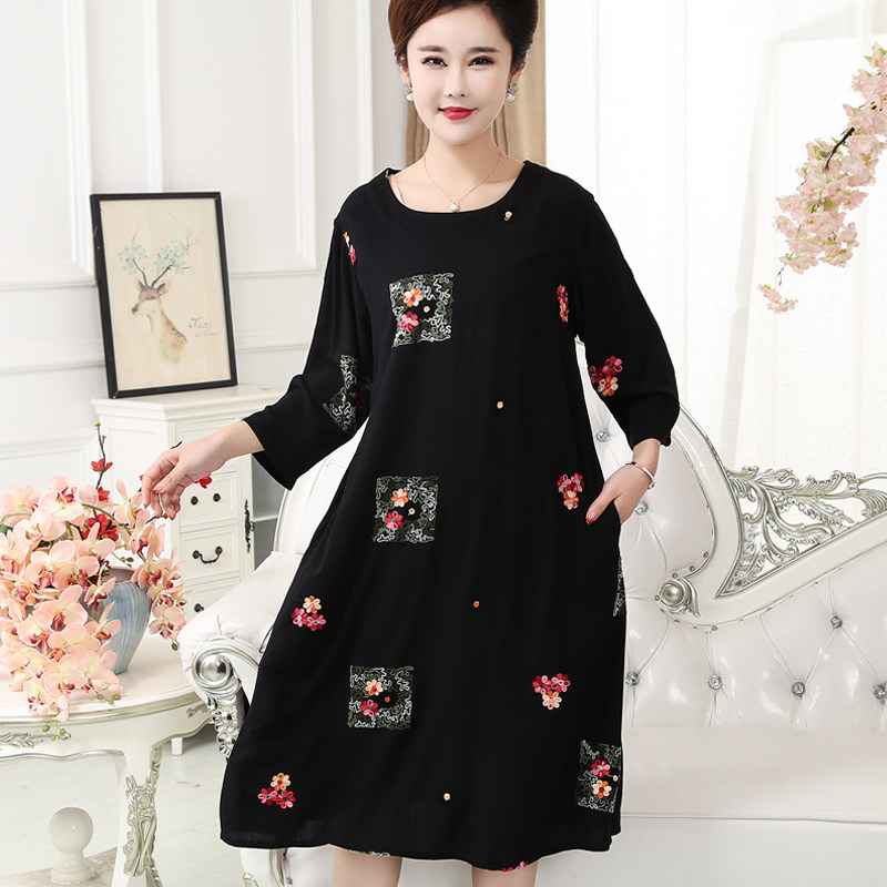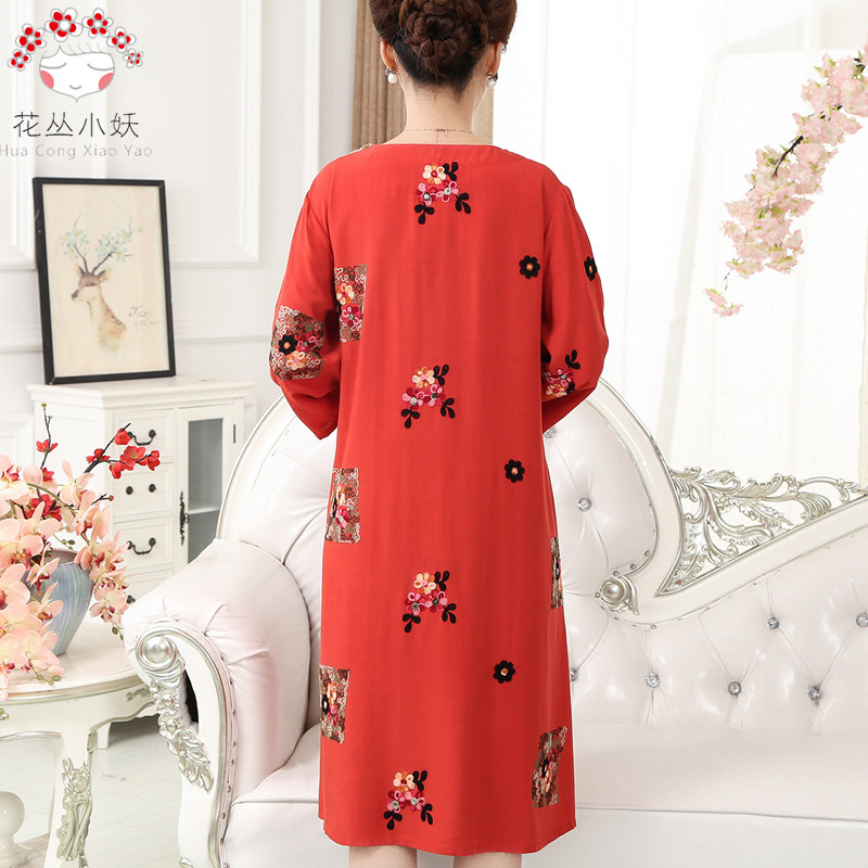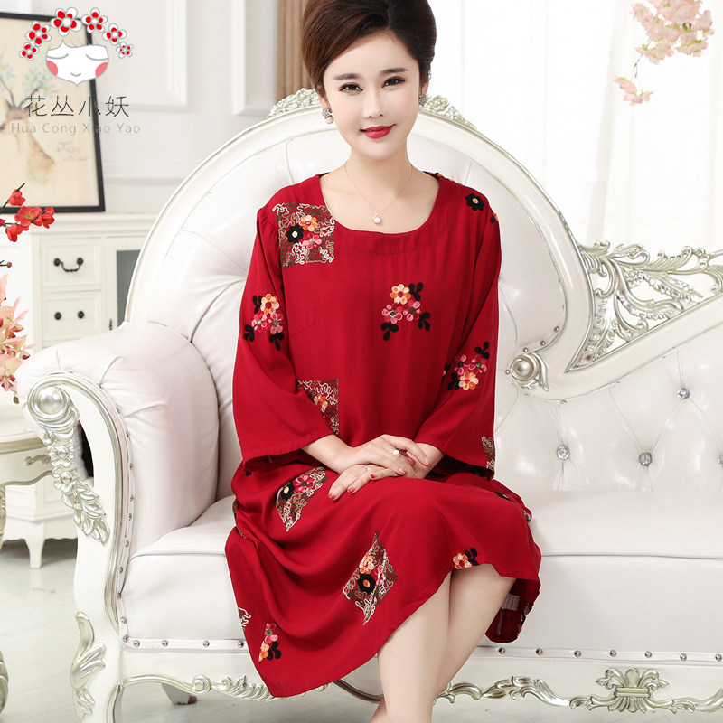 2022 summer middle aged mother cotton silk thin style pyjamas mid-sleeve round collar large size pyjamas dress polo dress can be worn outside