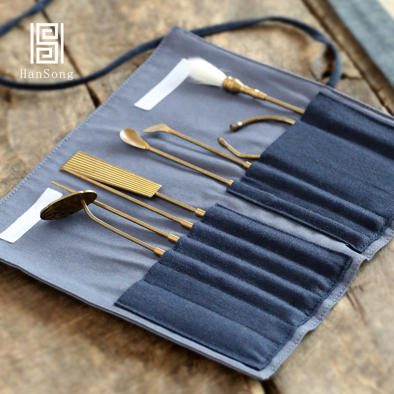 Open up pure copper incense seal seven-piece set incense powder incense mold incense spoon incense pressure incense shovel incense utensils incense seal furnace