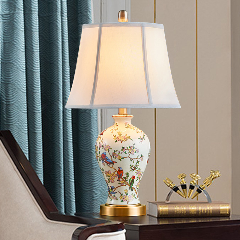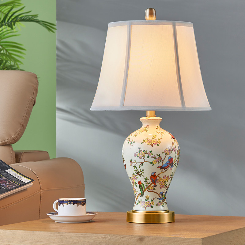 American simple ceramic table lamp Bedroom bed lamp Modern pastoral living room Romantic creative wedding study table lamp
