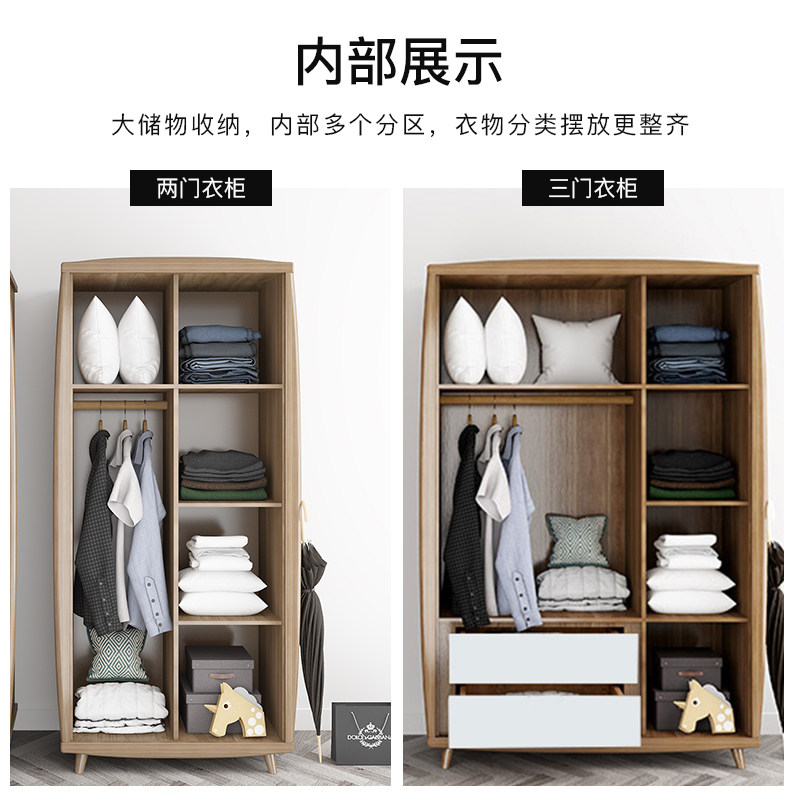 Nordic solid wood 2 doors 3 doors large wardrobe Overall storage cabinet Bedroom wardrobe Simple modern economic wardrobe