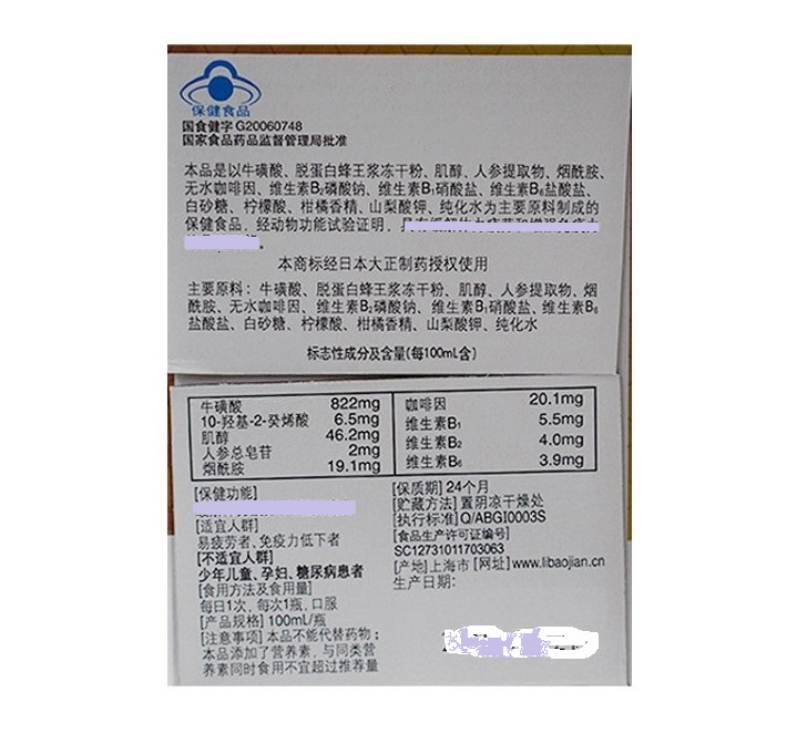 Li health care functional drink ginseng royal jelly type small glass bottle 100ml*50 full box