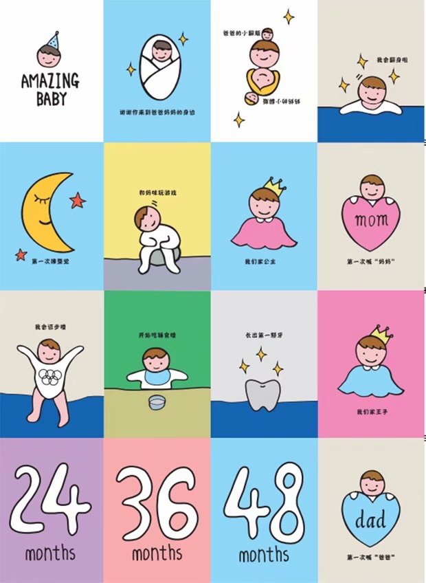 ins burst card Baby month year-old record card Small fresh Macaron color photo background prop card
