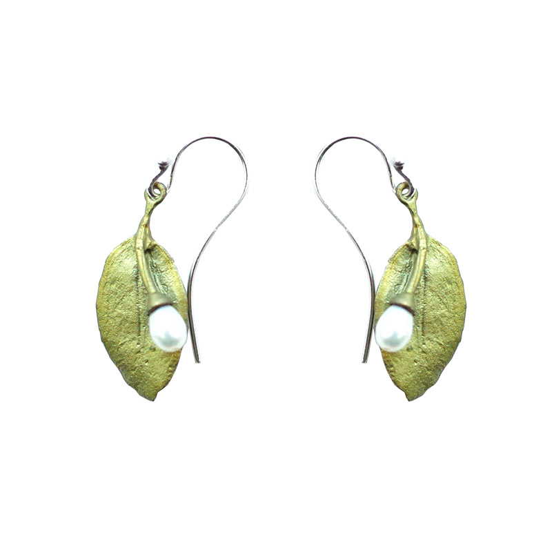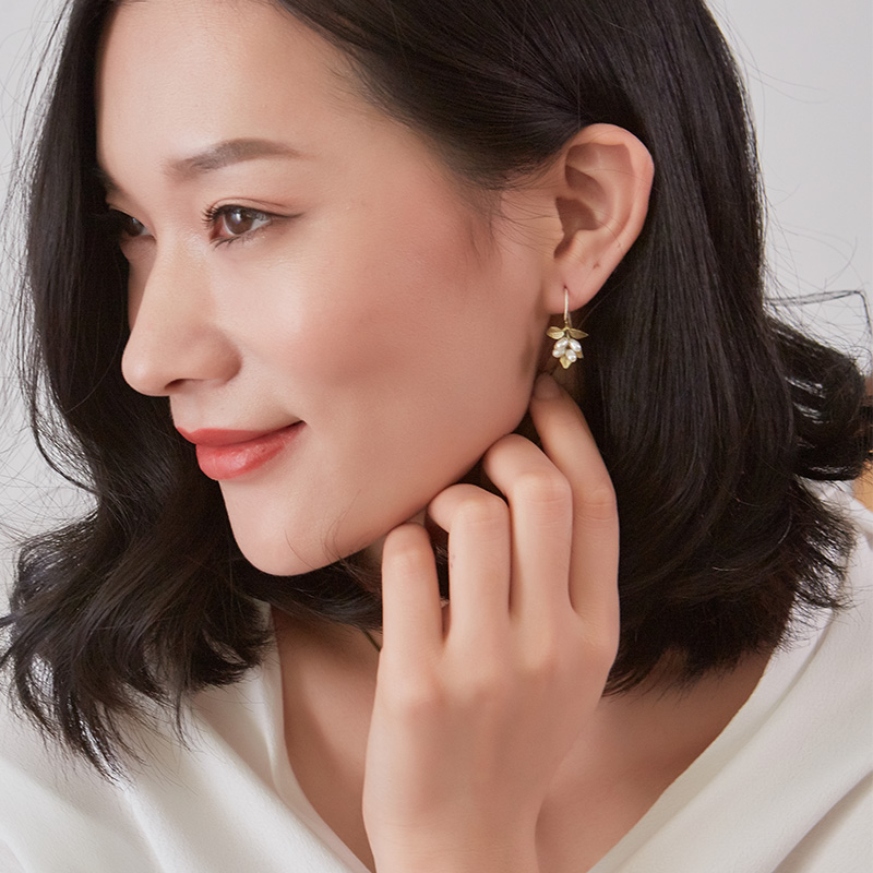Peach - gold - flower tufts earrings peach - gold - pearl - pearl - peach - flower earrings