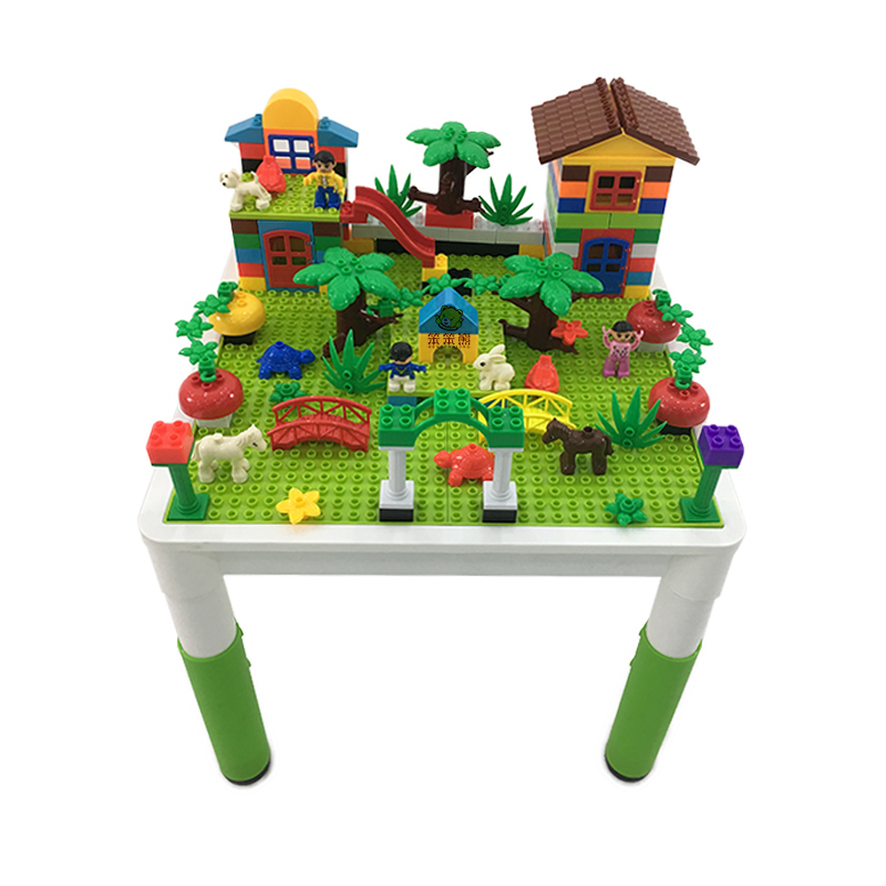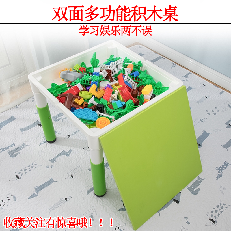Children's plastic building block table multi-functional double-sided game small square table can be raised and lowered home compatible with Lego size particles
