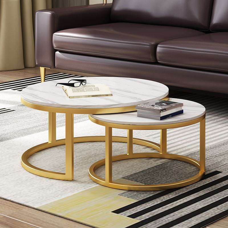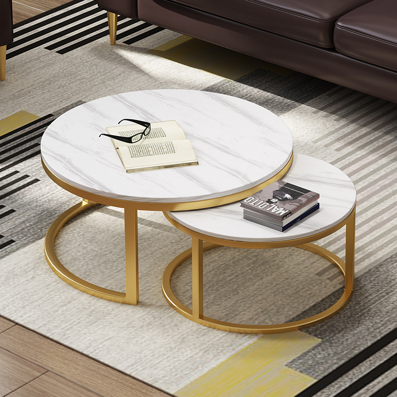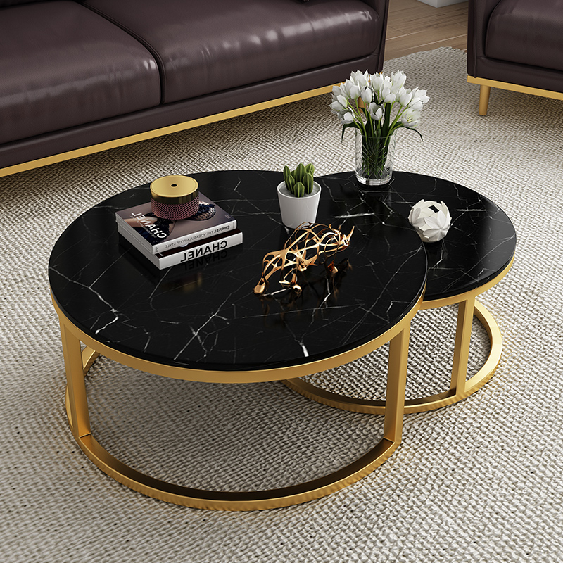 Winter Bear Nordic coffee table Simple modern small apartment living room Marble Stainless steel net red Japanese small coffee table round