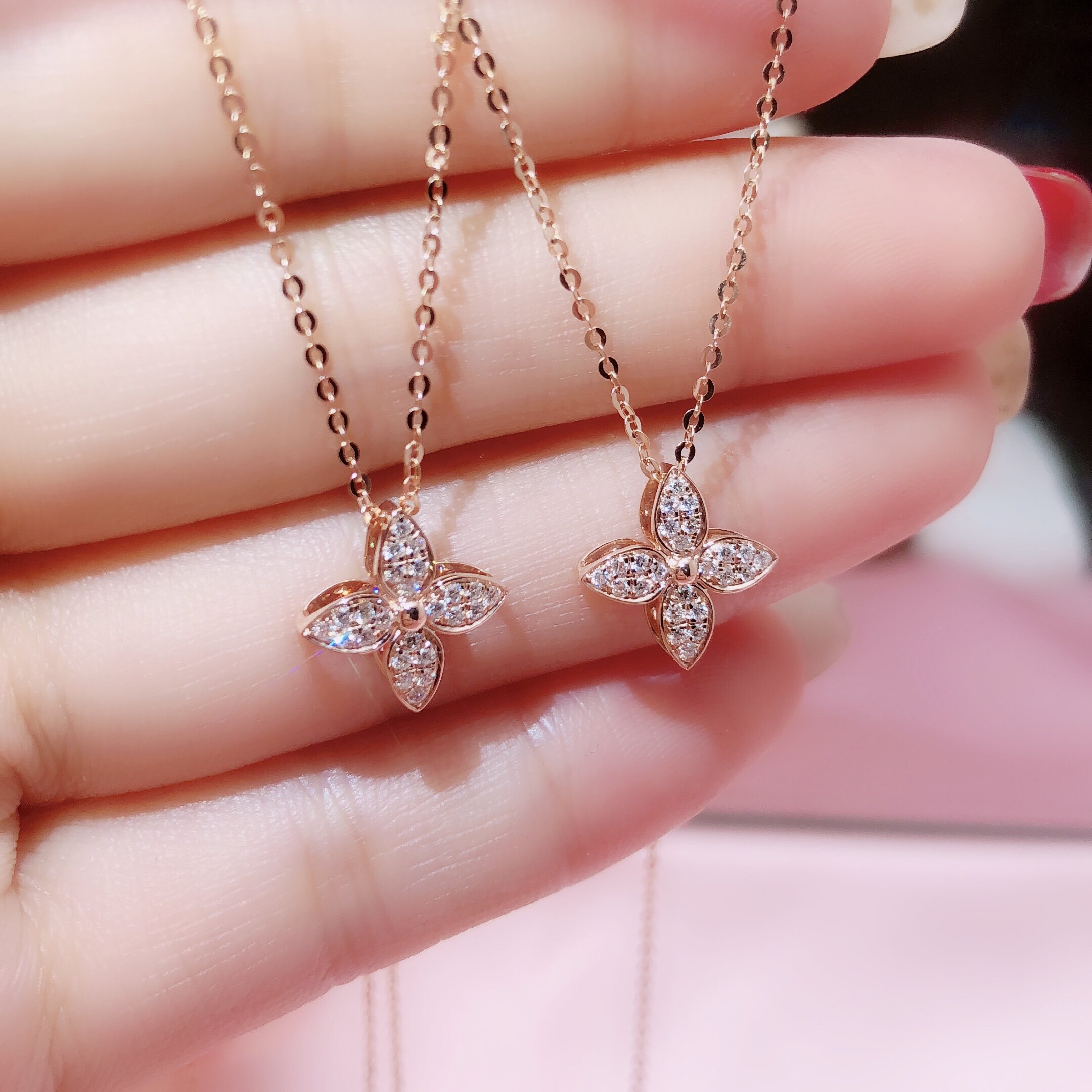 18K Rose Gold Diamond Necklace Four Leaf Grass Pendant Single Drill Lock Bone Chain Platinum Diamond Pendant Women Color Gold Item Pendant