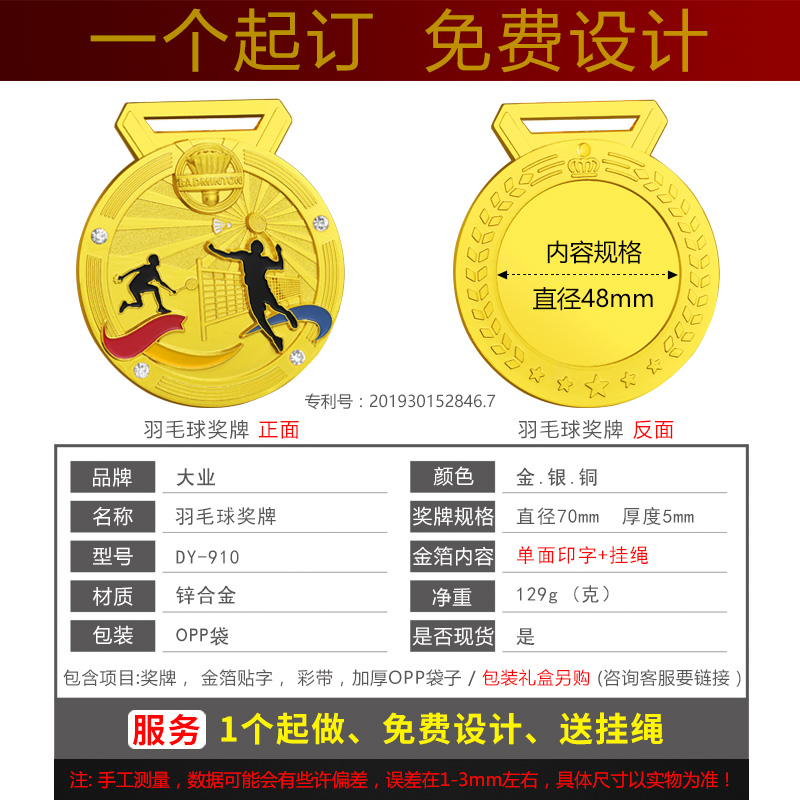 Original design of the day industry brand badminton medal souvenir gold medal production metal tag custom commemorative plaque