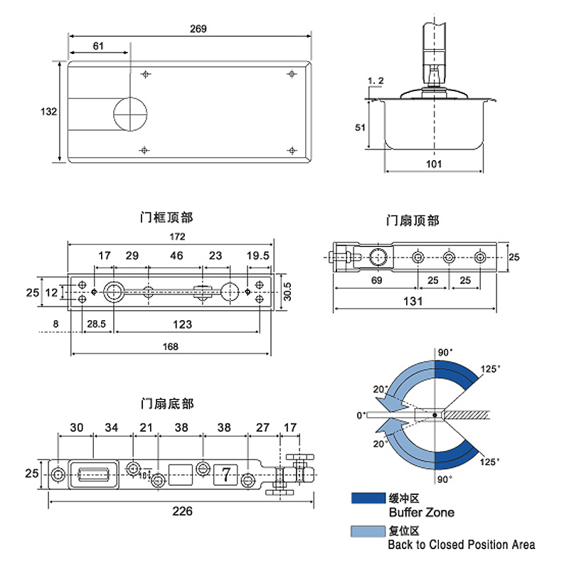 Dunsheng D-220B floor spring load-bearing 90kg door width 900mm imported movement floor spring 1 5 thickened panel