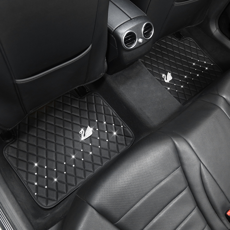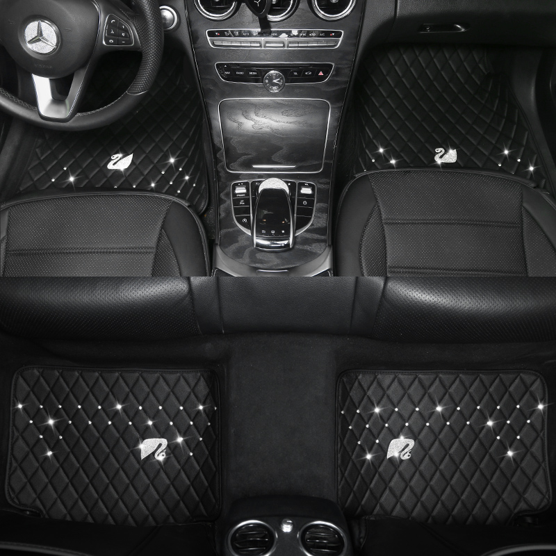 Automotive foot pad swan diamond-encrusted leather general purpose car floor mat waterproof easy to clean unisex foot pad washable