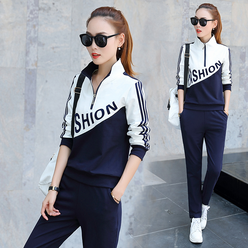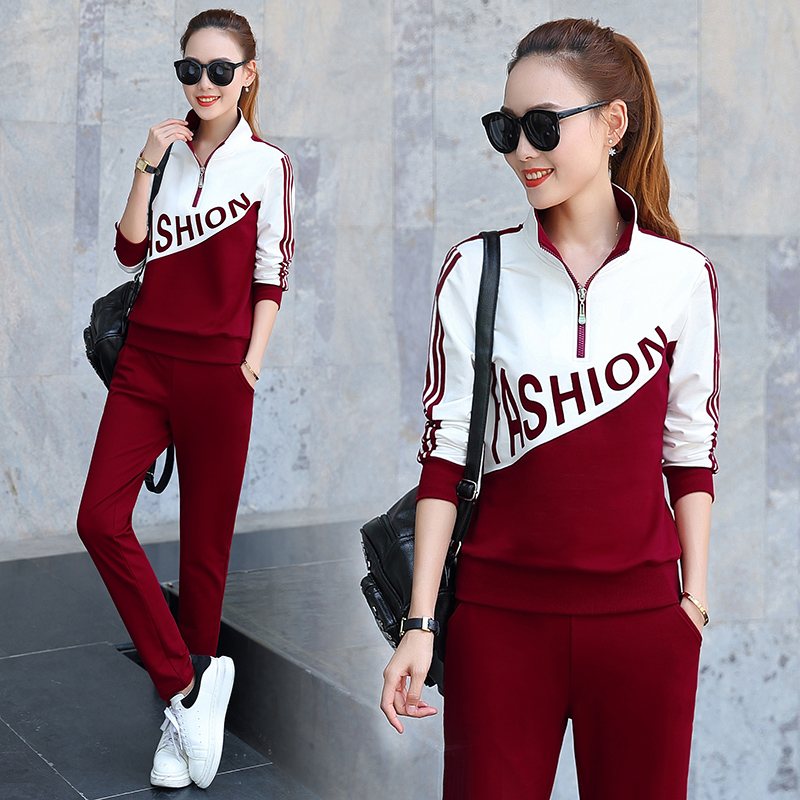 Sport suit women 2021 spring fall new fashion casual display slim long sleeve thick cotton T big size running suit two sets