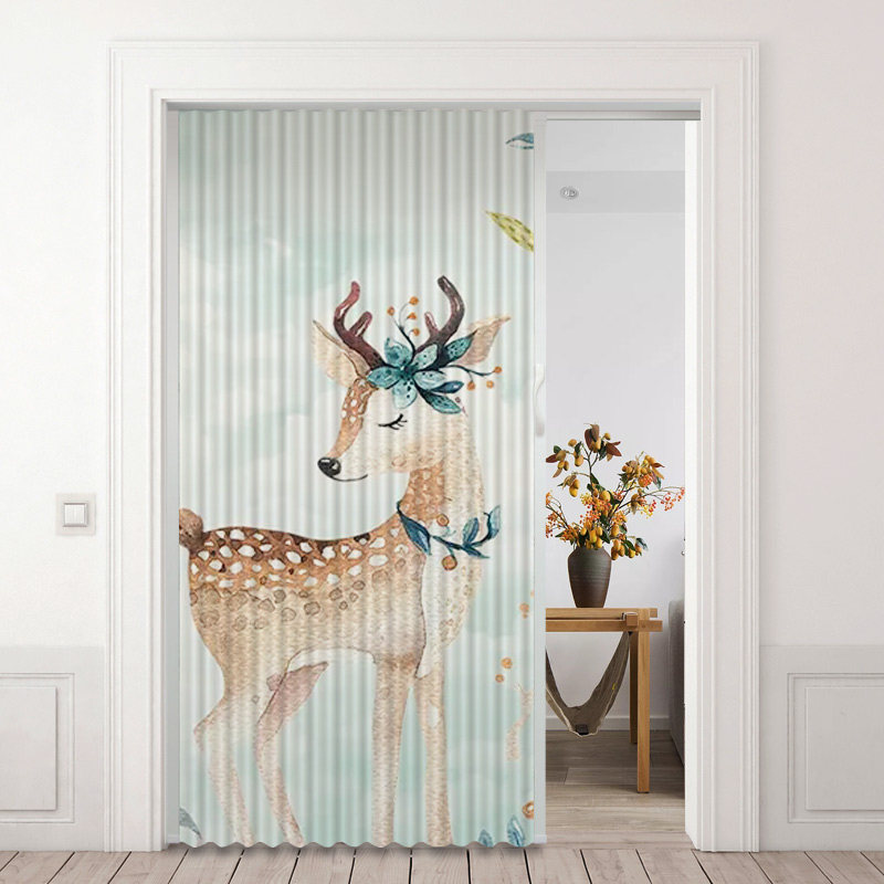Japanese-style printing folding pvc push-pull invisible children's room partition door Balcony wardrobe Kitchen powder room folding door