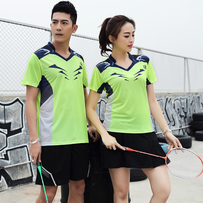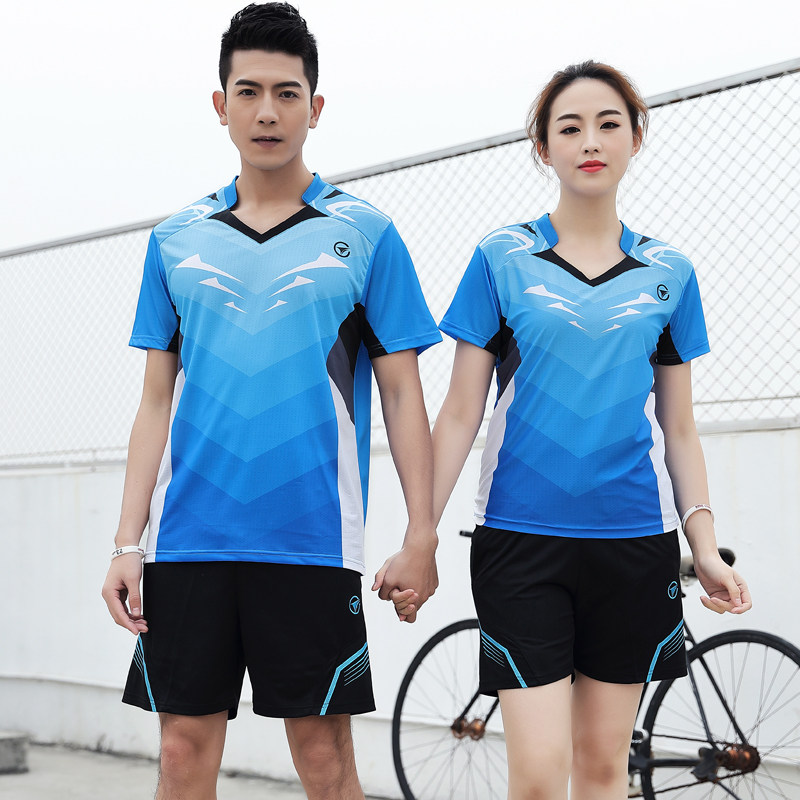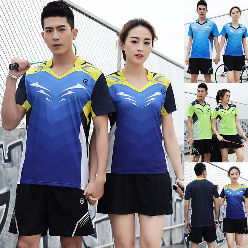 Badminton quick-drying sports suit Short-sleeved T-shirt couple gas discharge net men and women table tennis training clothes skirt printing