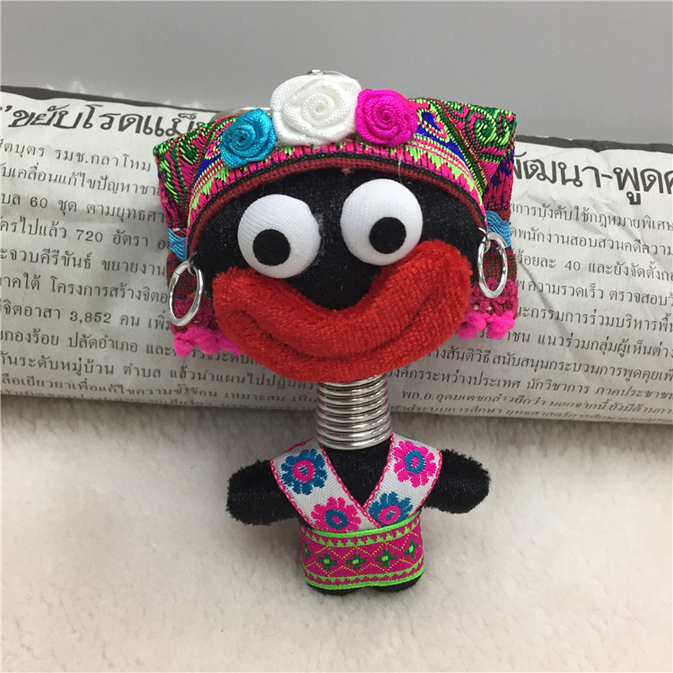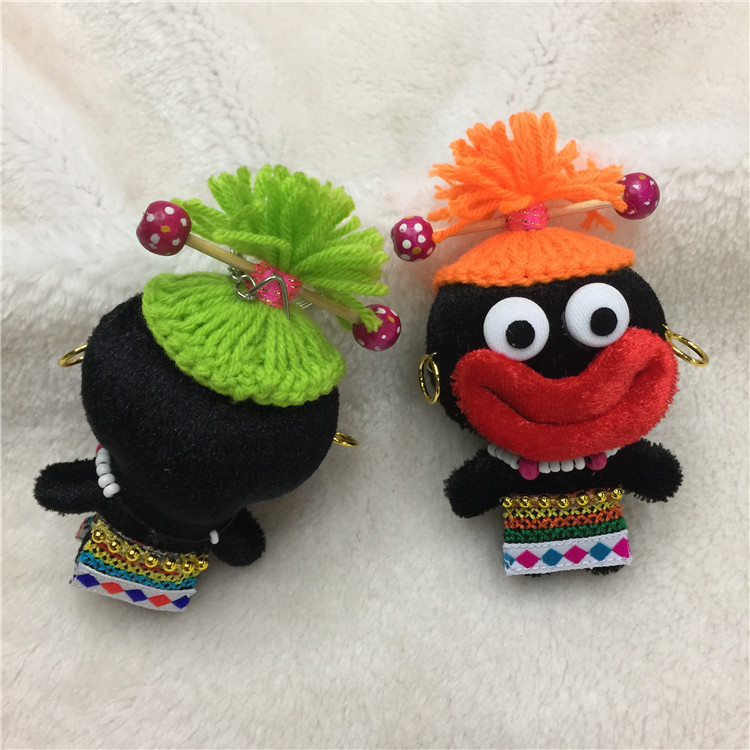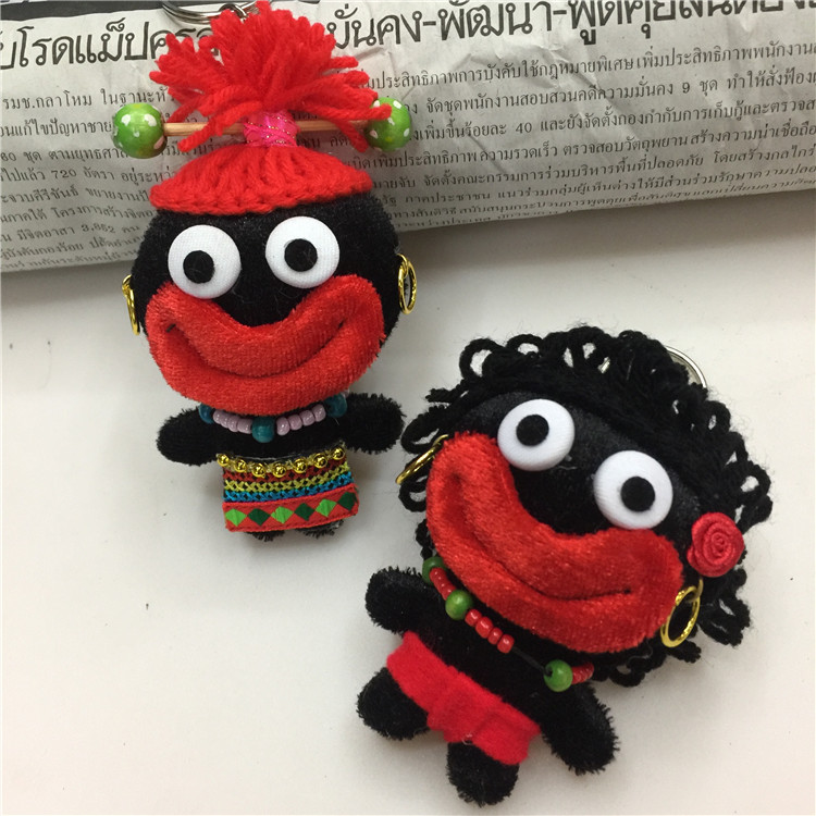 Thailand red lips small black keychain plush doll key ring creative car pendant sausage mouth doll pendant