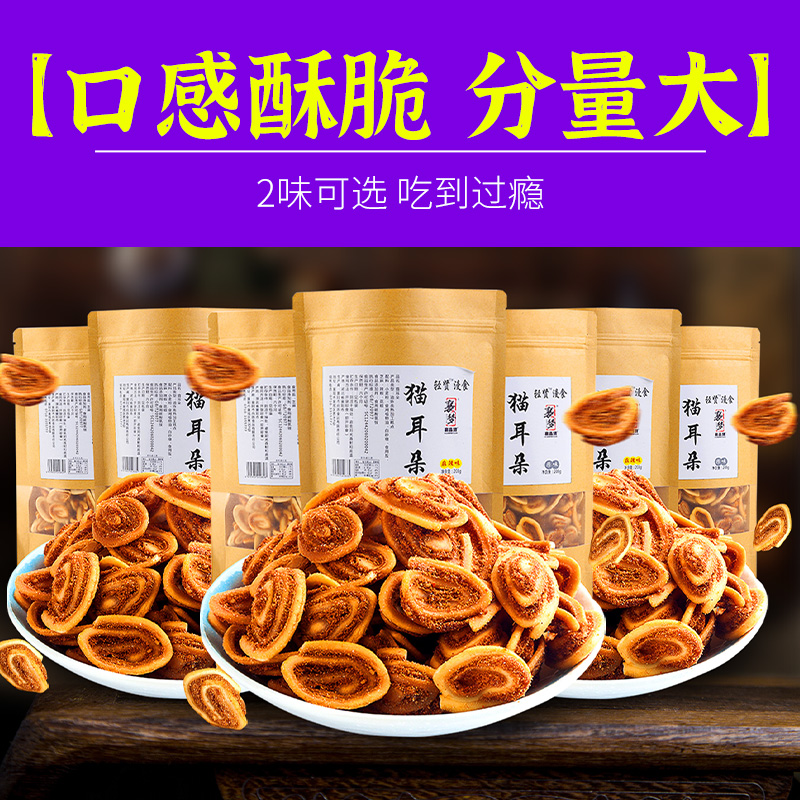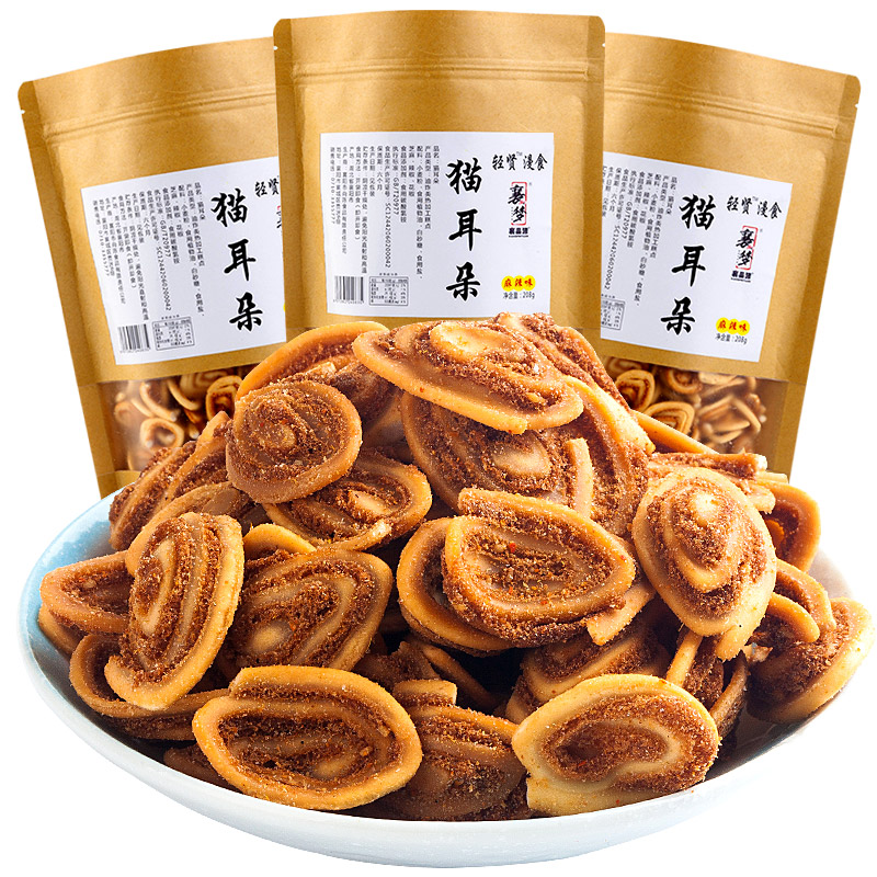 Handmade cat ears childhood snacks spicy Net red snacks big bag whole box of childhood snack food cat ear crisp