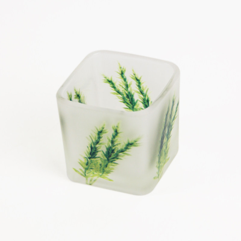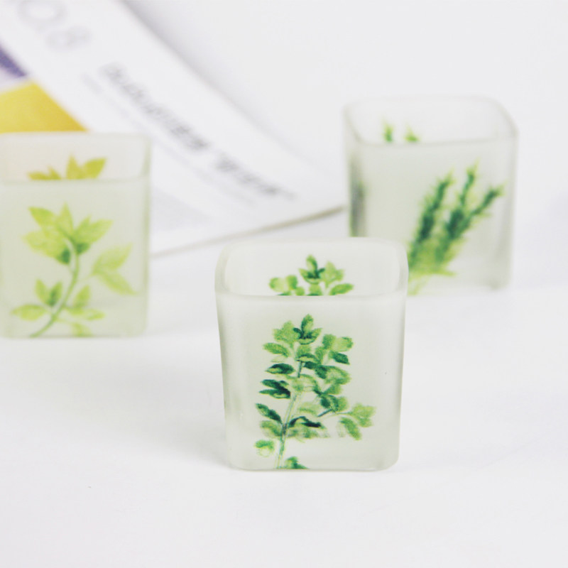 Fresh 5CM green plant printing square glass candle holder romantic home candlelight dinner decoration to send electronic candles