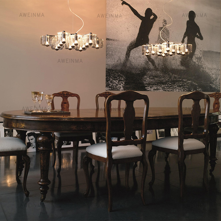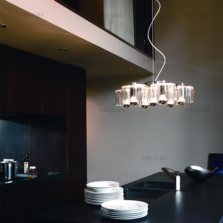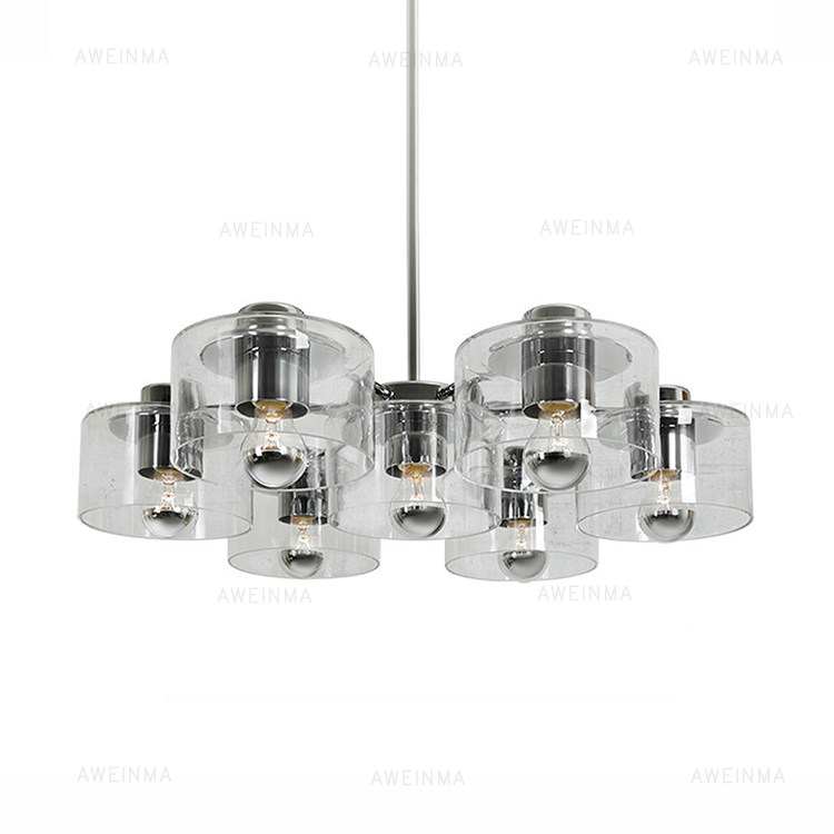Postmodern fashion simple transparent glass dining chandelier electroplating bedroom living room led snowflake fish line chandelier