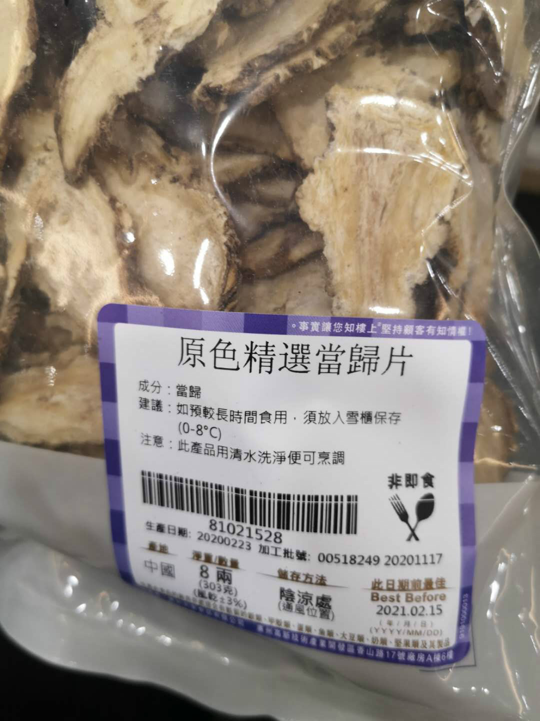 Hong Kong upstairs primary color selection of angelica slices 303 grams