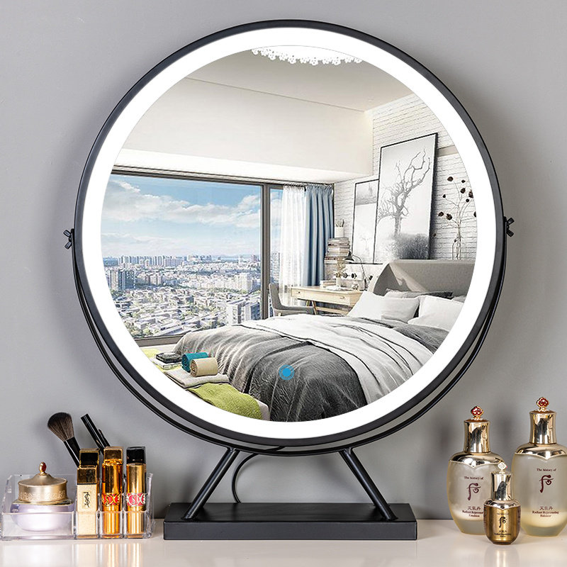 Smart Net red LED lamp vanity mirror with lamp desktop Nordic round makeup mirror Princess large