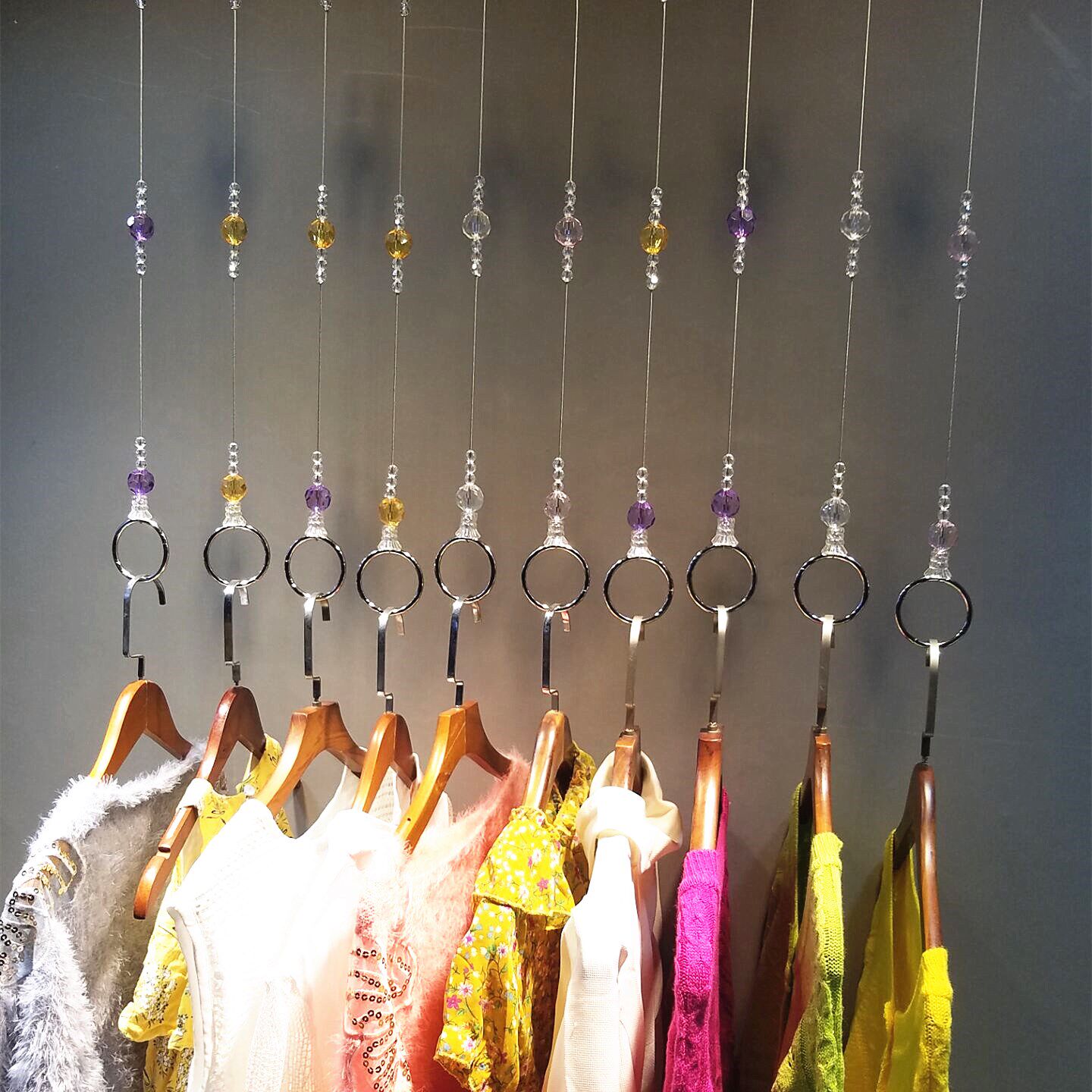 Clothes Rings Hanger Clothing Shop Display Rack Upper Wall Hanging Chain Hooks Beads Necklace Shop Window Props Crystal Pendant Chain