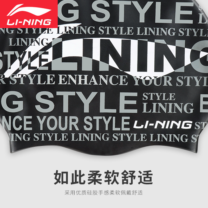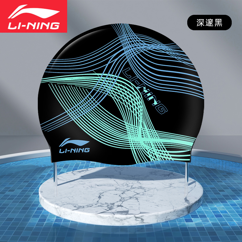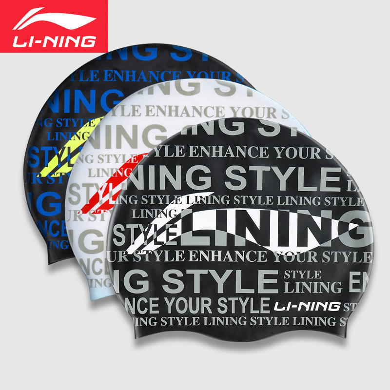 Li Ning Bathing Cap Silicone Waterproof Swimming Cap Woman Long Hair Comfort Inle Head Men's Fashion Training Competition Diving Equipment