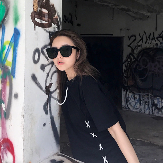 Star Zhou Yangqing same white frame sunglasses female tide face face Korea Net Red Street shoot box sunglasses